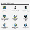 Stay connected with the GT1 Smartwatch, featuring a 1.3-inch full-touch display for easy navigation. Designed for convenience, it supports Bluetooth calling, allowing you to answer calls directly from your wrist. The smartwatch also includes useful features like a sedentary reminder, alarm clock, remote camera control, and wrist-raise screen activation.